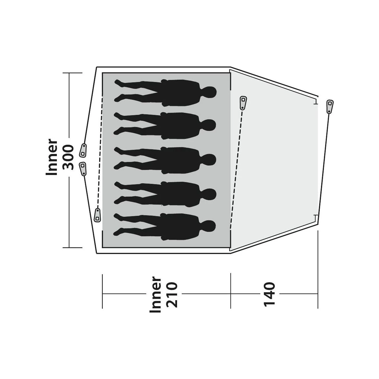 | Inner tent dimensions: | 210 x 300 x 175 cm |