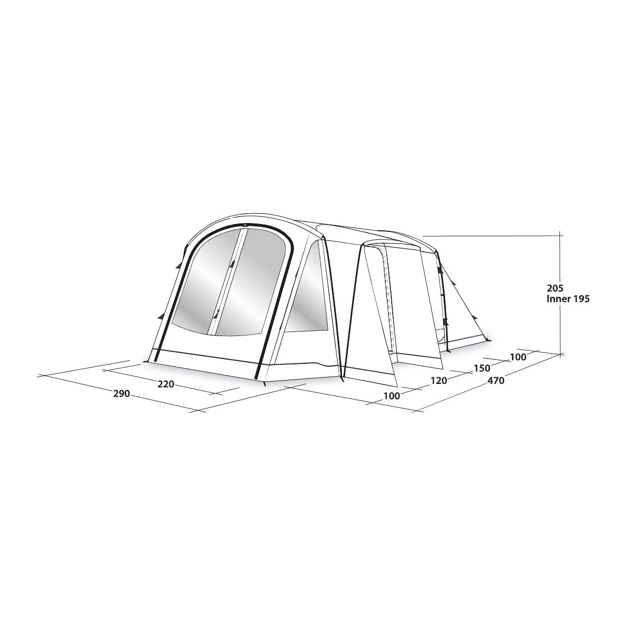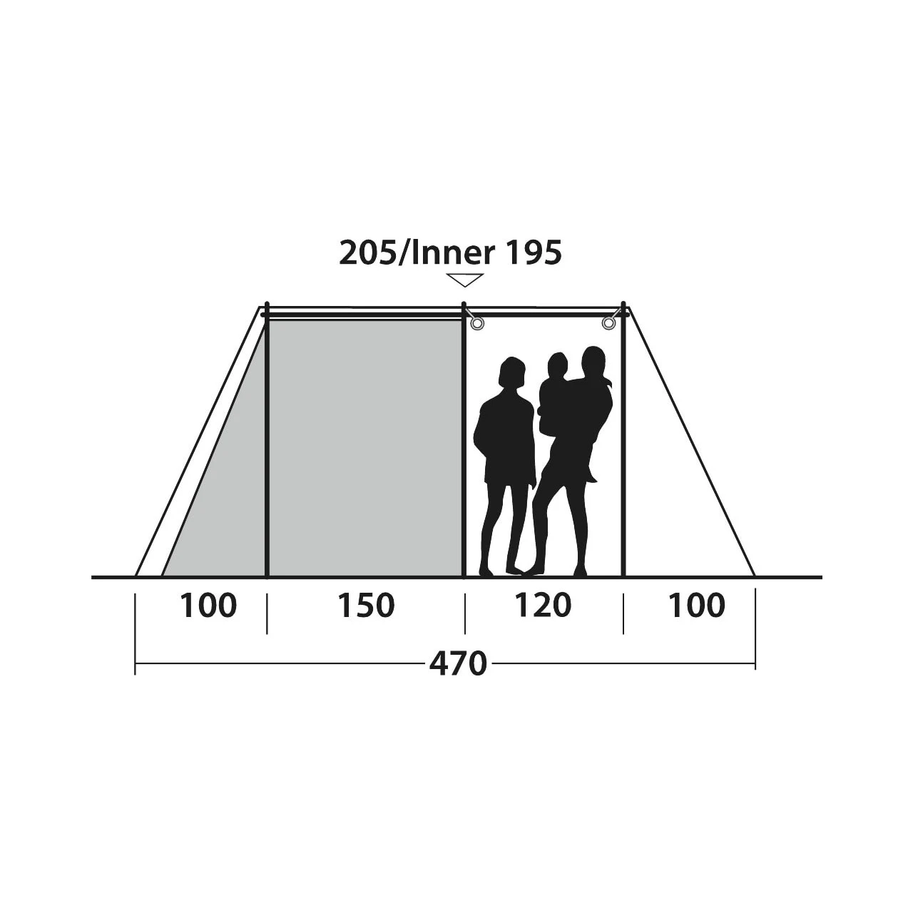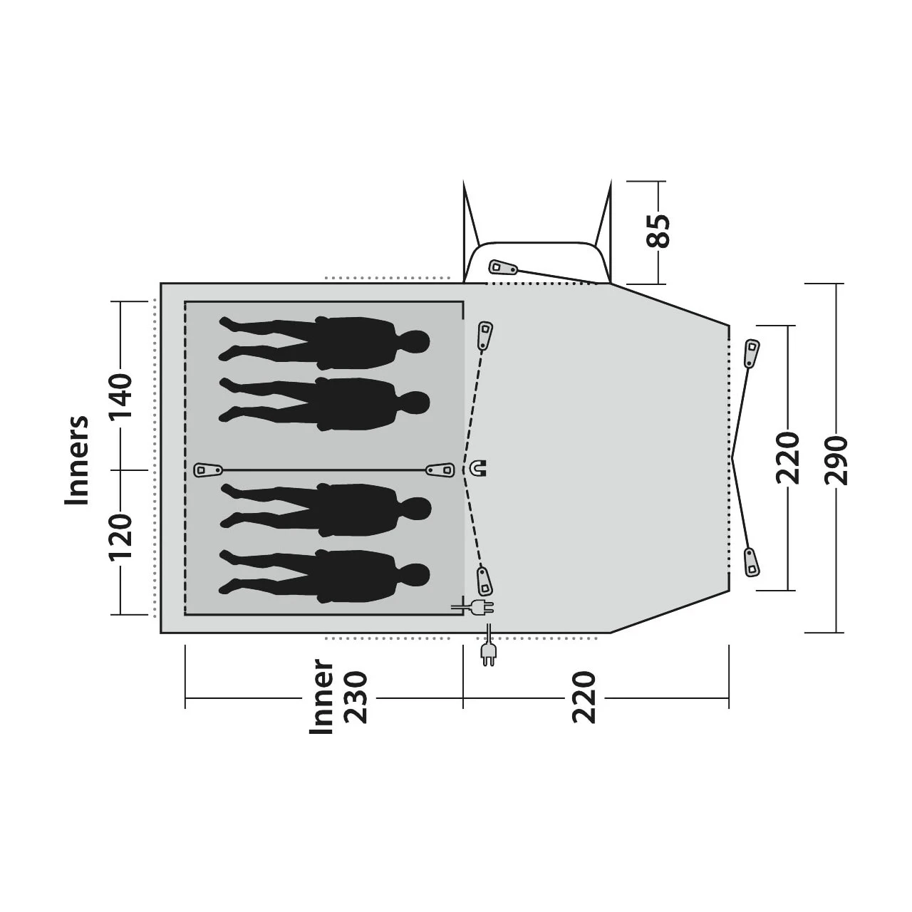 | Inner tent dimensions: | 230 x 260 x 195 cm |